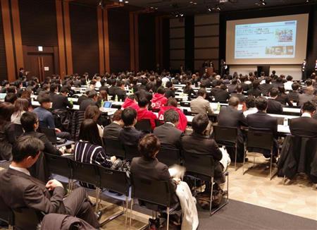 「知財活用アイデア全国大会2015」で参加者のプレゼンを聞く来場者【拡大】