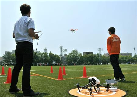 秋田市で28日、小型無人機「ドローン」を使ってサッカーの試合を上空から撮影し、戦術強化に生かす実験が行われた。映像でフィールド全体の状況を瞬時に確認でき、関係者は「真上から撮影することで選手同士の距離が分かりやすくなる」と結果に満足していた。