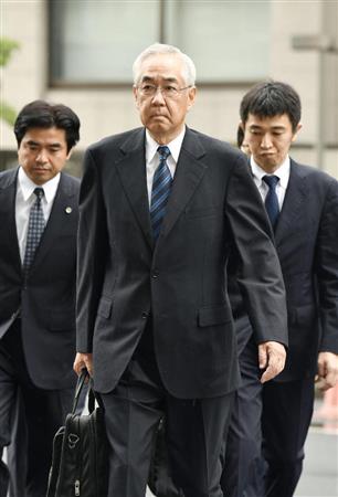 福島第1原発事故をめぐる初公判のため東京地裁に入る東京電力の武黒一郎元副社長=30日午前【拡大】