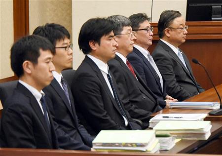 福島第1原発事故を巡る初公判に臨む検察官役の指定弁護士ら=30日午前、東京地裁(代表撮影)【拡大】