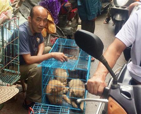 ただ一部ではペットと称して売る人もおり、警官数十人が取り囲むようにして警戒した。犬を売る男性は「犬を(助けるため)高く買ってくれる愛護団体の人に売りたい」と話していた。