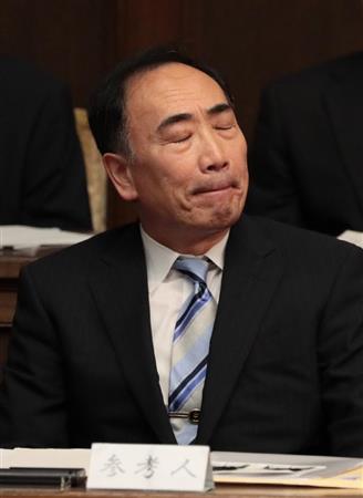 府議会参考人招致で、参考人席に座る籠池泰典氏。目を閉じて質問を聞く場面も=10日午後、大阪府庁【拡大】