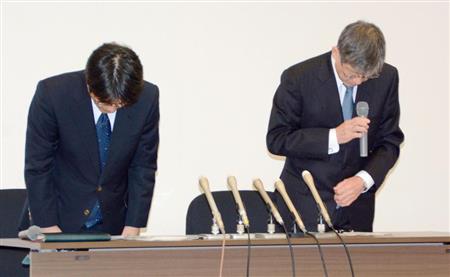 記者会見で謝罪する名古屋大病院の石黒直樹院長(右)ら=19日午後、名古屋市【拡大】