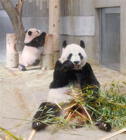 丸太に登ったシャンシャン=東京・上野動物園(公財東京動物園協会提供)【拡大】