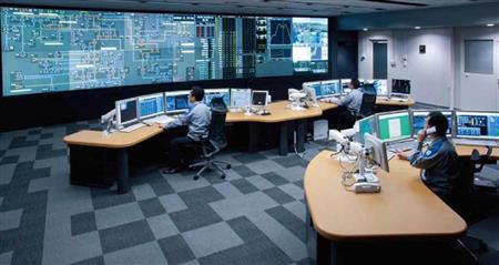 九州電力の中央給電指令所に案内していただきました。指令所は、九州全体の需給運用や系統運用などさまざまな業務を行う電力会社の中枢機関です。運用技術者の方から太陽光発電の制御について説明を受けました。