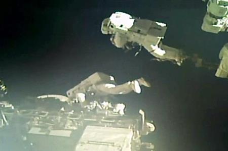 金井さんはペアを組んだ米国人飛行士とともに、アームの先端部にあった古い部品を船内に回収。その後、船外の仮置き場にある別の部品を正式な設置場所に移動し、カメラの取り付けも終えた。