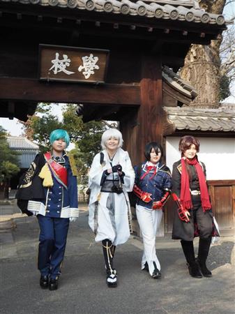 「秘蔵刀剣展」の会場、史跡足利学校には「刀剣乱舞」のキャラクターに扮したコスプレーヤーも数多く訪れた=足利市昌平町【拡大】