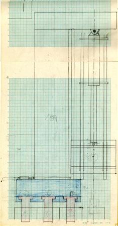 北村精男が方眼紙に書いた圧入機のラフスケッチ【拡大】