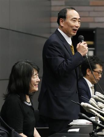 保釈後、記者会見する森友学園前理事長の籠池泰典被告。左は妻の諄子被告=25日午後8時、大阪市の大阪弁護士会館【拡大】