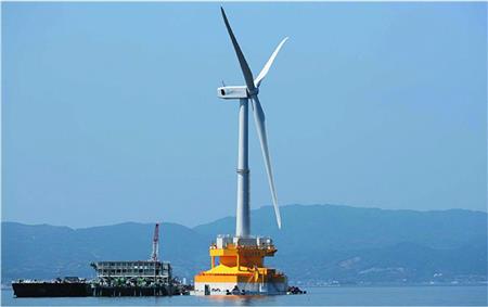 福島浮体式洋上ウインドファーム実証研究事業の下で設置された5メガワットの「ふくしま浜風」【拡大】