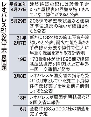 「補償はどうなるのか」-。18日に公表されたレオパレス21の施工不良問題に関する第三者調査委員会の中間報告。一連の問題では耐火性を高める改修工事のため、7千人超の住民に早期転居を求める事態となっている。問題拡大に同社の対応も追いつかず、入居者やオーナーからは、怒りや不安の声が上がっている。