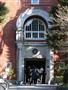 同志社大子会社の廃棄物処理法違反事件で家宅捜査に入る京都府警の捜査員ら=19日午前9時すぎ、京都市上京区の同志社大