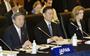 G7エネルギー相会合で記念写真に納まる林経産相(中央)ら各国代表=2日午前、北九州市小倉北区
