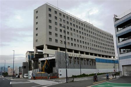大将軍駅が入っていた高尾ビル。解体作業が進んでいる=10月5日、姫路市高尾町