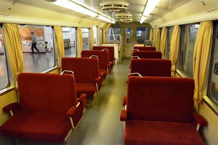 手柄山交流ステーションに保存されている姫路モノレールの車内=姫路市西延末