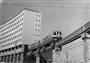 手柄山駅を発車する開業直後の姫路モノレール(姫路市提供)