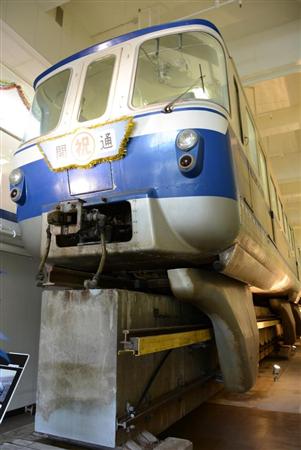 米ロッキード社の航空機製造技術が取り入れられた姫路モノレールの車両。姫路市の手柄山交流ステーションで展示されている