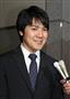 眞子さまとの婚約について、報道陣の質問に笑顔で答える小室圭さん=17日午前、東京都中央区