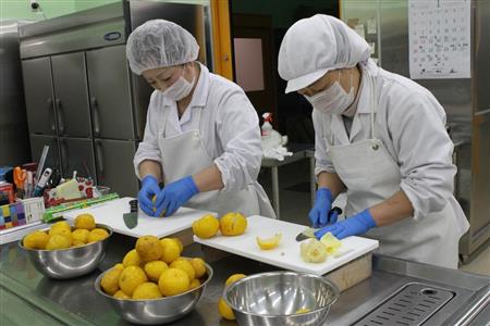 加工場では手作業でユズの商品作りが行われている=奈良県東吉野村