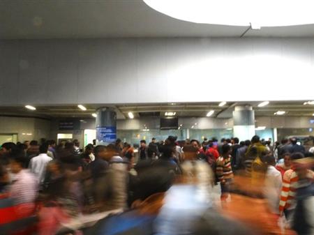 ブルーラインとイエローラインの乗り換え駅であるラジブ・チョーク駅は、早足で行き交う人々でごった返していた。きっぷ売り場の前も入り乱れ、どこに並べばよいのかわからない。横入りされないよう、前の人の背中にぴったりと張り付く。そう理解していても、見知らぬ男性にくっつかれるのは、気分がいいものではない。行列しているのは、見渡す限り男性ばかりだ。