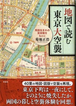 「東日本大震災復幸支縁」と銘打って昨年のゴールデンウイークに善光寺出開帳が行われた東京下町の両国回向院。その裏手で生まれた著者は、69年前の3月10日、当時6歳で東京大空襲に遭った。地図会社ゼンリンの元役員で、地図研究者でもある。本書には同社の前身の日地出版が終戦直後、焦土を調査して作り上げた貴重な資料「戦災焼失地図」も収録、これに自身の体験談を重ねている。相撲と花火でにぎわった街は焼夷(しょうい)弾によって一夜で失われ、「私には幼なじみがいない」と著者。「地図は歴史の証人」と位置づけ、最終章「復興のネットワーク」につなげている。(草思社・2310円)
