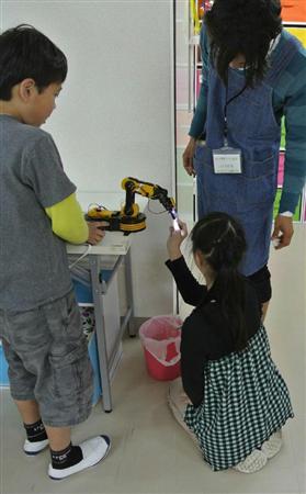工作好きの子供たちが集まる「ケアステップ新宿」。クレーンアームを模した玩具でピンポン球を運ぶ作業は空間認知能力を高めるという=東京都新宿区【拡大】