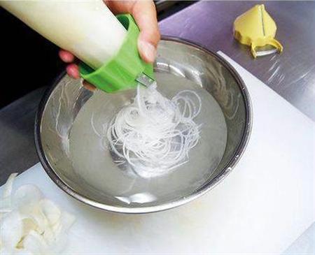 平刃を使えばキュウリなどをらせん状にスライスできます。ピーラーは野菜を薄切りにしたり皮をむいたりするのに便利です。
