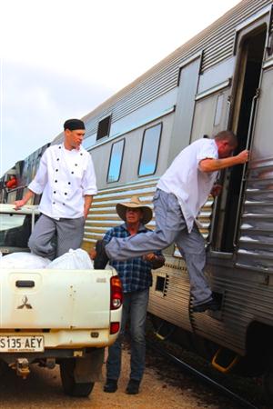 インディアン・パシフィック号は、給油のために30分ほど停車する。道中は3泊4日もあるというのに、機関車の間近に行けるのは、このとき1回限りしかない。一眼レフを抱えた“撮り鉄”たちが、いそいそと車両から飛び出して行く。