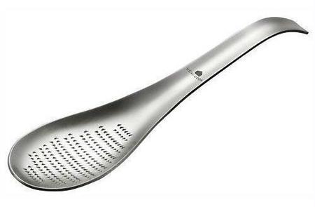 スプーンのような形状のおろし金。鍋料理にニンニクをすりおろして入れる▽煮物におろしショウガを加える▽紅茶にショウガを加えてジンジャーティーを作る-ときなどに活躍します。すりおろしたスプーンで鍋の煮汁などをかき混ぜれば、薬味を無駄なく使うことができます。切れ味がよく、食材の繊維がからみにくいのも特徴です。