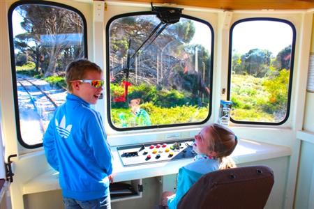 パース市民の身近なリゾートであるこの島に、家族で遊びに来た11歳のお兄ちゃんと9歳の妹。運転士のグレッグが「座りたい?」と問うと、妹が運転席によじ上る。自動運転システムが導入されていて、安全上の問題がないとされているため、乗客サービスの一環として、子どもを運転席に座らせることがあるそうだ。