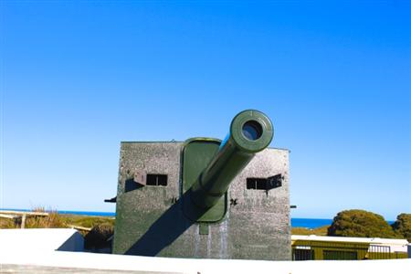鉄道が到着した小高い丘「オリバーヒル」には、第二次世界大戦中、日本軍から本土の港を守るために建設されたという軍事施設があった。この鉄道は、砲弾や弾薬を運ぶために敷設されたという。丘の上には、直径9.2インチの巨大な大砲がいまも残っている。いざというときに備えて用意されたものの、日本が敗戦したため、実際に発射されることはなかったそうだ。それゆえ、状態がいいまま保存されているという。ボランティアガイドの老人が、砲台の下の地下要塞や武器庫などに案内してくれる。