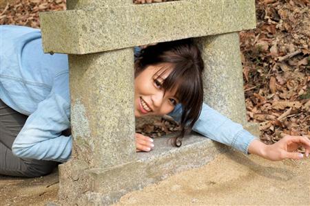 さて、「幸福の鳥居」に戻ります。鳥居があるのは山の中腹。くぐる部分のサイズは約30センチ四方。くぐり方は自由でタブーはありません。頭からでも足からでも、とにかくくぐればOKです。私も地面をはうように頭を入れ、肩は斜めと試行錯誤の末、何とかくぐり抜けることができました。