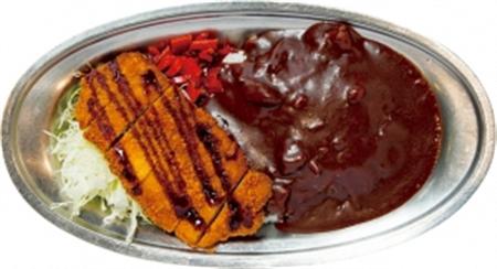 カツ、ハンバーグ、ウインナー、コロッケが乗る。ルーの粘度は高いが、しつこくない。