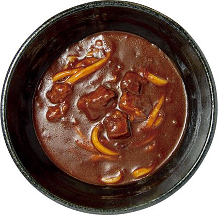 一般的なカレーうどんは、だしでルーを割るが、同店はそのまま麺に! 醤油とウスターソース、ケチャップを加えたルーが麺に絡みつく。