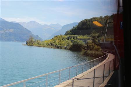 走りはじめてものの5分もすると、車窓には「あぁ、スイス」と、ため息をつきたくなる風光明媚な光景が、どこまでも続いている。 検札に来た車掌が、「いい旅を!」と声をかけていく。いわく、こんなにカラリとよく晴れた気持ちのいい日に、ピラトゥス山まで出かけられるあなたは幸運に恵まれている。山頂で飲む地元のビールは、さぞおいしかろう、と。