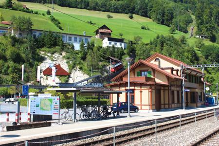 ルツェルン中央駅から、ピラトゥス山のふもとにあるアルプナッハシュタット駅までは、ツェントラル鉄道に乗ってわずか20分弱で到着する。