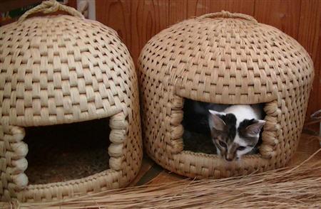 狭くて暖かいところが大好きな猫を引き付ける民芸品が新潟県関川村にあります。稲わらをドーム状の籠に編み上げた猫のすみか「猫ちぐら」です。