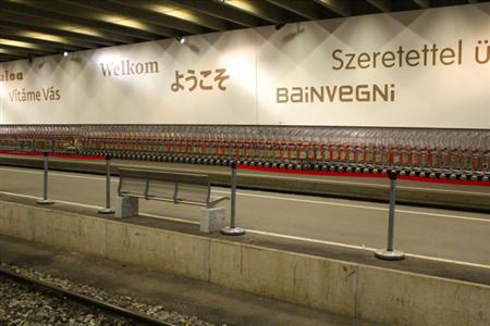 ツェルマット駅には、英語、ドイツ語、イタリア語、フランス語のほかロシア語やスペイン語、中国語など世界の言語で「ようこそ」と書かれている。車内の各座席には、列車の概要を説明したパンフレットと、車内サービスを案内する小さな冊子があらかじめセットされていて、車内サービスはドイツ語、英語、フランス語、イタリア語、中国語、日本語で書かれ、今年用のパンフレットには、さらに韓国語とタイ語での案内も付け加えられていた。シートには、日本語にも対応した音声案内ガイドもある。