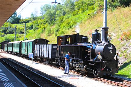 パトリシアいわく、鉄道ファンならサン・モリッツ駅は見逃せないのだとか。氷河特急をはじめベルニナ急行など特別列車の入線シーンを撮影したり、SL機関車が出発準備を進めている場面に出くわすこともある。駅の構内には、待合室を兼ねた公共スペースがあり、鉄道関連の展示物が並ぶちょっとしたミュージアムになっていた。窓口では氷河特急の乗車証明書を発行してもらえるし、ガラスケースにディスプレイされたオリジナルグッズを買うこともできる。