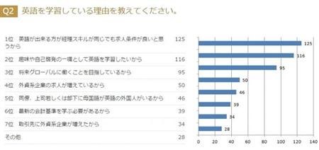 オンライン英会話サービス事業を運営する株式会社レアジョブは、会計分野のプロフェッショナル・エージェンシー事業を展開するジャスネットコミュニケーションズ株式会社と共同で行なった経理パーソンに対するアンケート調査の結果を発表した。経理職など、専門性の高い職種においては、従来英語力の必要性は低いと考えられてきたが、今回経理職を対象として実施したアンケート調査によると、回答者の72%が「英語の勉強をしている」と回答したように、英語の必要性を感じ、実際に行動していることがわかった。また、英語を勉強している理由について最も多い回答は「英語ができる方が経理スキルが同じでも求人条件が良いと思うから」(複数回答)であり、趣味としてではなく、キャリアアップのために英語に取り組んでいることが判明した。