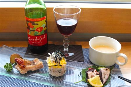 美食と美酒には目がない私は、ことのほか料理を楽しみにしていた。だって3時間44分もかけて、だらだら飲んだり食べたりできるのだ。飲み会でいったら1次会が終わって2次会の佳境くらい? その間ずっと電車に乗っていられるなんてすばらしい……! そんな予想は大きく外れた。なぜって観光列車でもある「おれんじ食堂」は、停車駅ごとに観光スポットやイベントが用意されている。食事をとりながらも乗ったり降りたり、意外と慌ただしいのだ。