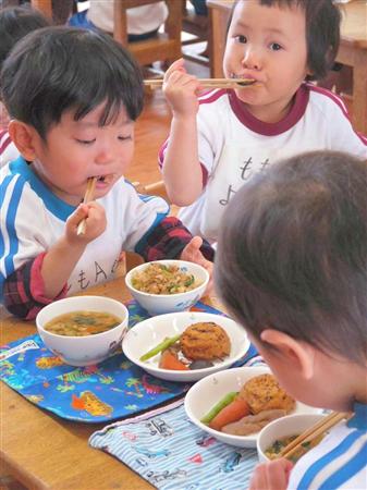幼いうちから素材の味を生かした和食を中心とした食事をし、正しい生活習慣を身につけることを重視する保育園が注目されている。近年は、味を正しく認識できない味覚障害の子供たちも増えているとされ、伝統的な和食の良さが保育現場でも見直されている。(戸谷真美)