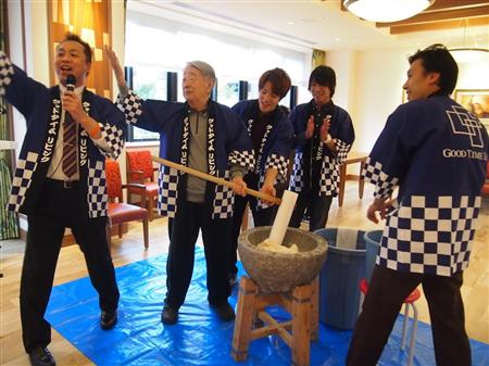昨年12月、有料老人ホームや学生向け賃貸マンションなどが併設した集合住宅「グッドタイム リビング なかもず」(堺市北区)の交流サロンで餅つき大会が開かれた。入居する高齢者や学生ら約40人が参加し、高齢者も餅つきを楽しむなど盛り上がった。