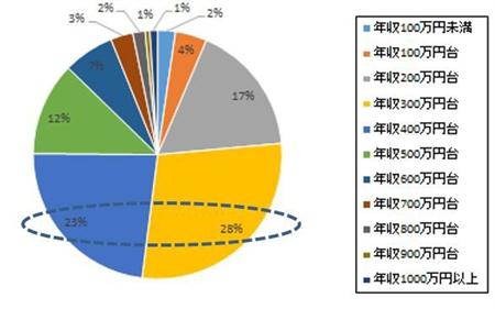 調査の結果、30代未婚男性の年収は51.6%が300~500万円で、年収300万円未満グループの婚活率(9.2%)は、年収600万円以上グループ(22.7%)の半分以下であることがわかった。また、結婚する気がないのは、年収300万~600万円グループ「1人の方が気楽・自由だから」、年収600万円以上グループ「キャリア・夢が最優先」「1人の女性に縛られたくない」という理由が挙げられている。