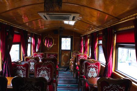 この博物館がまた見応えがあった。メインの展示物はホールいっぱいに広がった砂漠を模したジオラマ。「日本人なら運転がうまいだろう。競争しよう」本業は運転士のナーデルさんが言う。いかにも中東らしいこの鉄道模型は、頼めば動かすこともできるそうだ。ほかに世界の車両を描いた壁画や、往時の待ち合い室を再現したベンチは、なんと蒸気機関車と一緒に写真を撮れるセルフィー(自撮り)スポットになっていた。