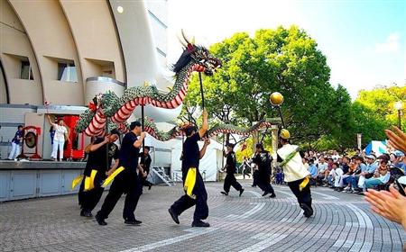 伝習所以外では「東龍倶楽部」を忘れてはいけません。長崎東高の在京OBが結成し、現在県外出身者も含め約50人。イベントやアイドルのコンサートで龍踊を披露しています。