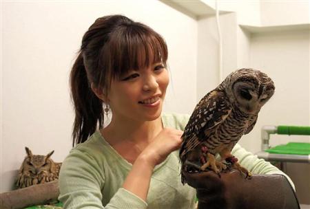 経営者は千葉市から来た青山智之さん、玲子さん夫妻。3年前、静岡・富士花鳥園の受付にいるフクロウに「カウンターでも飼えるの」と驚きます。元々猛禽類に関心があった玲子さんは、ペットにするだけでなくフクロウカフェを持とうと決め、ブリーダーのもとで何百羽もヒナを育てカフェで働きました。