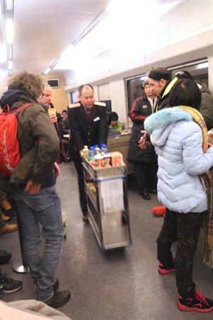 何となく肌寒くてコートを着込んだまま、雪景色の車窓を眺めて検札を待つ。どこの国へ行っても、日本の新幹線のように手早くスムーズにはいかないものだ。が、それにしてもえらく時間がかかっているではないか。