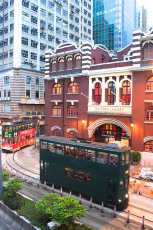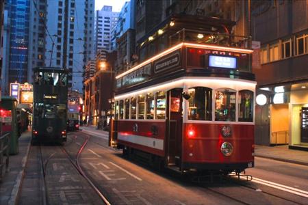 香港トラムは、いまから100年以上前の1904年に、26台の車両を用意して創業した。ツアーに使われるのは初期モデルの車両を復元したもので、1920年代に実際に街を走っていたルーフトップ付きの車両を細部まで再現しているという。トラム創業時、香港はイギリスの植民地下にあった。トラム用の車両はイギリスでパーツを造り、それを香港に運んで組み立てたそうだ。そのため車両デザインは、イギリスのトラムと似通っているという。創業時から、環境に配慮してゼロ・エミッションの電気のみを動力に採用。香港島北部の東西を結ぶ人びとの足として、開業当初は1階建ての車両のみだったが、現在ではご存じのように全車両が2階建てに変わっていて、現在も営業運行している2階建てトラムとしては世界最大規模となる1日20万人を運んでいる。