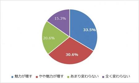 「素足がキレイであると魅力が増すか」という質問では64.1%は「増す」と回答。肌みせの中でも「素足」は重要なポイントと見受けられる。